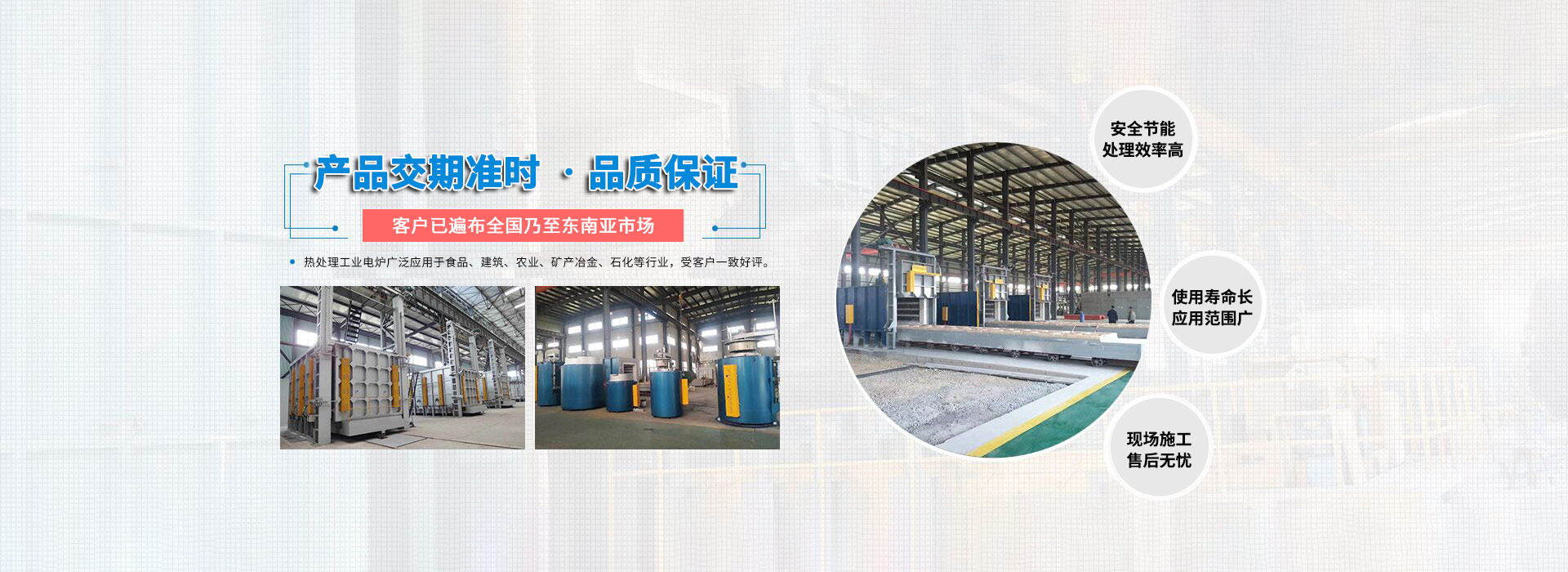 公司現(xiàn)有業(yè)務(wù)包括新能源電池?zé)Y(jié)爐、連續(xù)式金剛石鋸片燒結(jié)爐、臺車爐、熱風(fēng)循環(huán)爐、井式爐、罩式爐、管式爐、網(wǎng)帶爐、連續(xù)式滾筒爐、輥底爐、推桿爐、可傾式滾筒爐、鋼帶爐、鋁合金淬火爐、時效爐、坩堝爐、熔鋁保溫爐等。可對工件進(jìn)行以電、天然氣、煤氣、工業(yè)燃油等為介質(zhì)的真空、保護(hù)氣氛、控制氣氛等各種自控?zé)崽幚怼?/p>